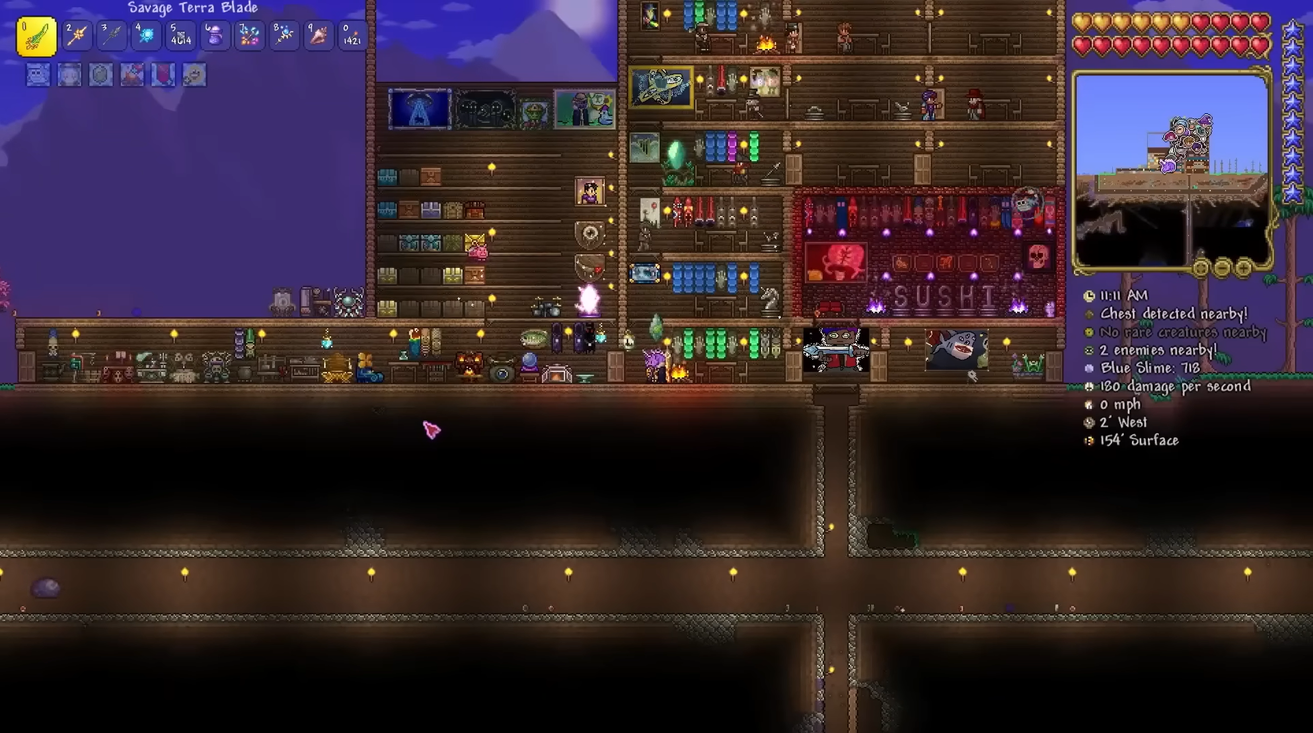 掘って、戦って、探検して、作ろう! 出来ないことは一切無いアクション満載のアドベンチャーゲームです。 この世界はあなたのキャンバスとなり、地面自体がペンキとなります。 道具を手に取り、出かけよう!多数の生物群系の様々な敵と戦う為に武器を作ろう。 地下深く掘り進み、アクセサリー、お金、何か役立つものを見つけよう。この世界に自分が必要としているすべての物を作るために、 資源を集めよう。家、砦、城を建設しよう。そこで生きる為に人々が引っ越してきて、あなたの探検に役立つものを売ってくれるようになります。 でも注意してください、様々な試練があなたを待ち受けています・・・それでは何から取り掛かりましょうか?